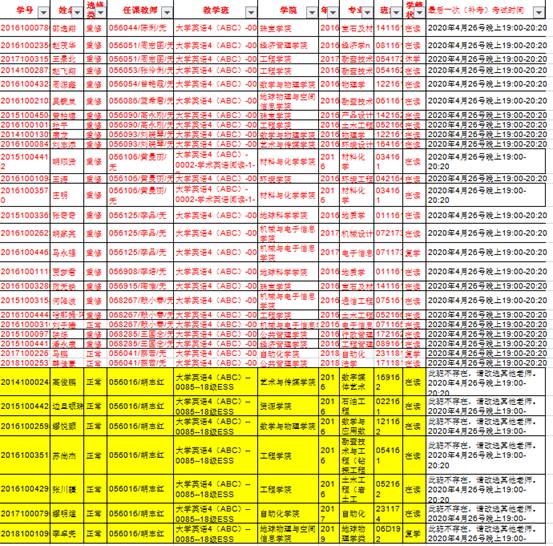 4月25日至26日,大英部和二教研室负责人和老师们跟补测群里的学生一一确定考试时间、考试方式和考试平台等相关补测信息,为补测做好准备。