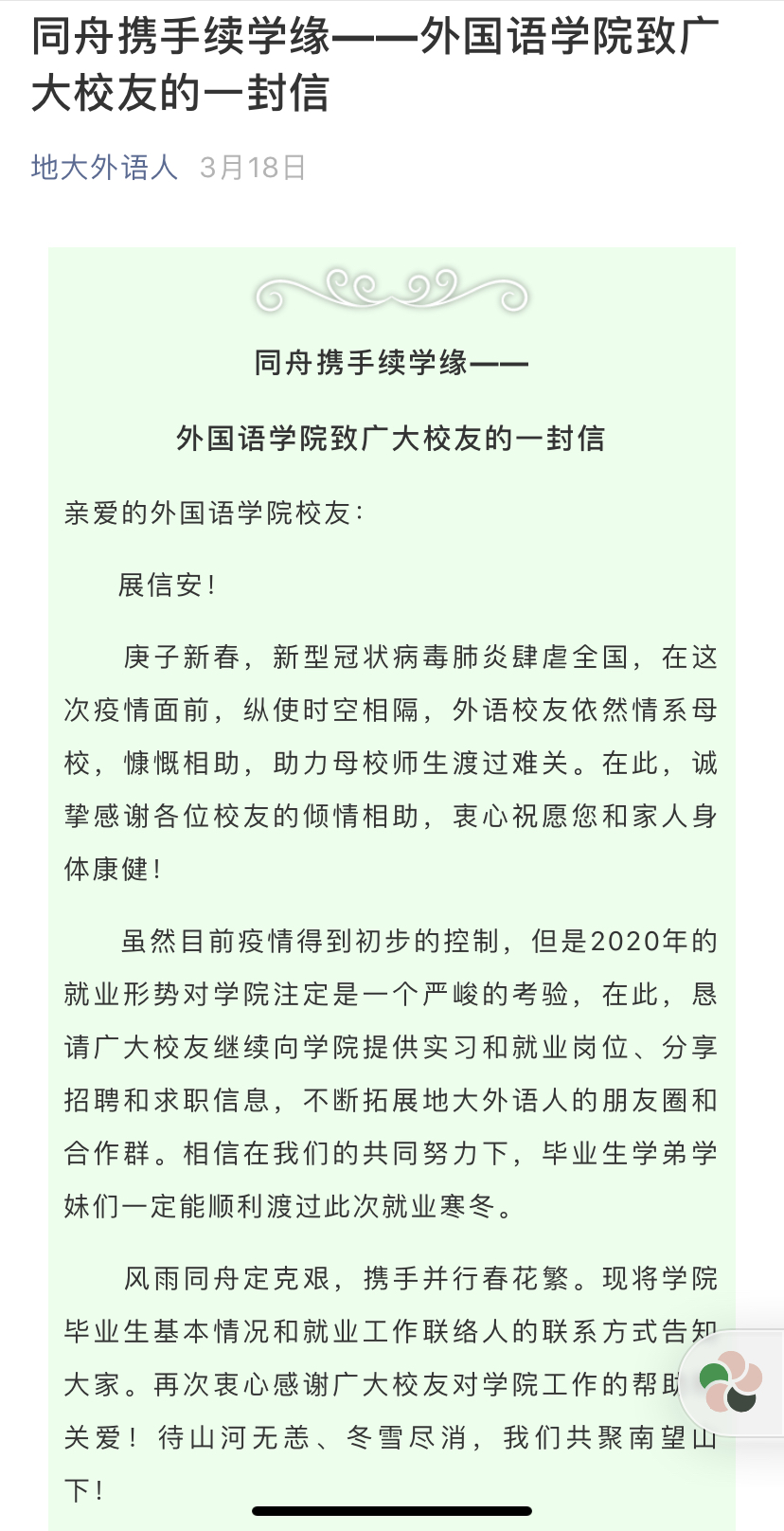 九一果冻制作传媒视频促进2020届毕业生充分就业工作方案 致校友的一封信