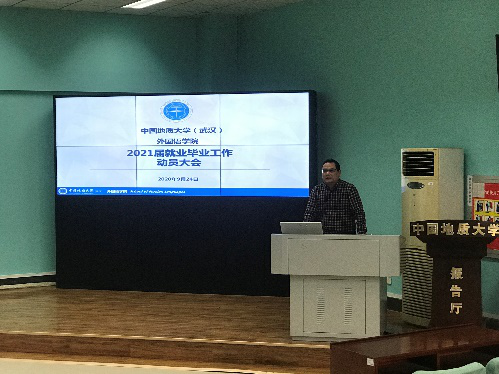 之后,党委副书记胡文勤老师以“选择与行动”为题,用数据对近年毕业生就业情况进行了具体分析,督促同学们清晰掌握当前疫情影响下就业形势,同时也向同学们介绍目前新兴职业:翻译工作者、网络主播、博主等,激励同学们勇于创新,找寻最适合自己的工作。