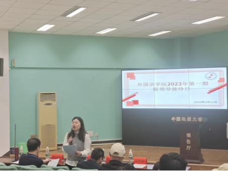 (通讯员 张睿、邹蔚鹤)2023年5月11日下午3:00,九一果冻制作传媒视频在北一楼报告厅举办2023年第一期院领导接待日,活动主题是外语学子国内外深造论坛。学院党委副书记胡文勤、副院长杨红燕、教育部出国留学培训与研究中心副主任赵英科、英语系党支部书记张地珂和本科各年级学生代表参加了本次活动。