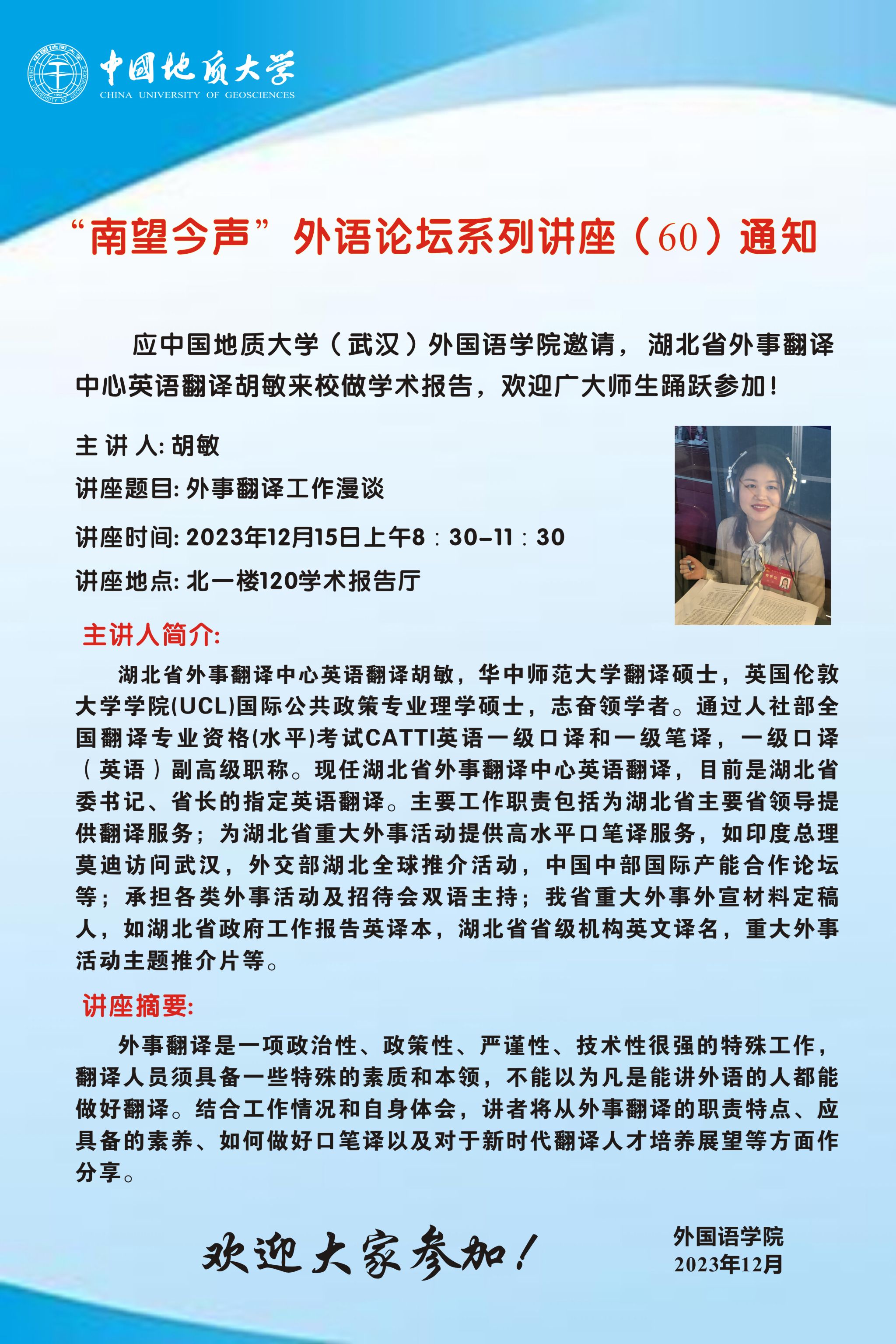 “南望今声”外语论坛系列讲座(60)通知