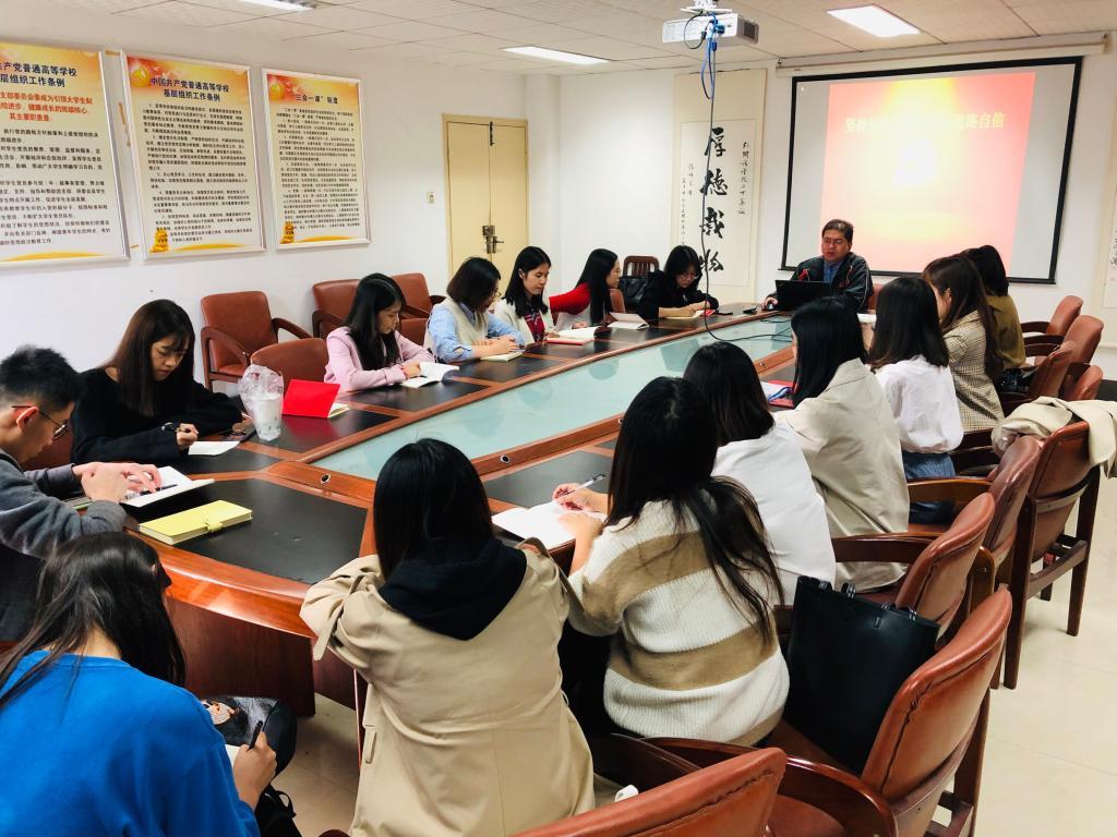 2019年10月29日下午2:30,中国地质大学(武汉)九一果冻制作传媒视频“不忘初心·牢记使命”主题教育系列党课在北一楼339正式开讲,学院党委副书记胡文勤为全院研究生党员讲授了题为“坚持社会主义,增强道路自信”的党课。