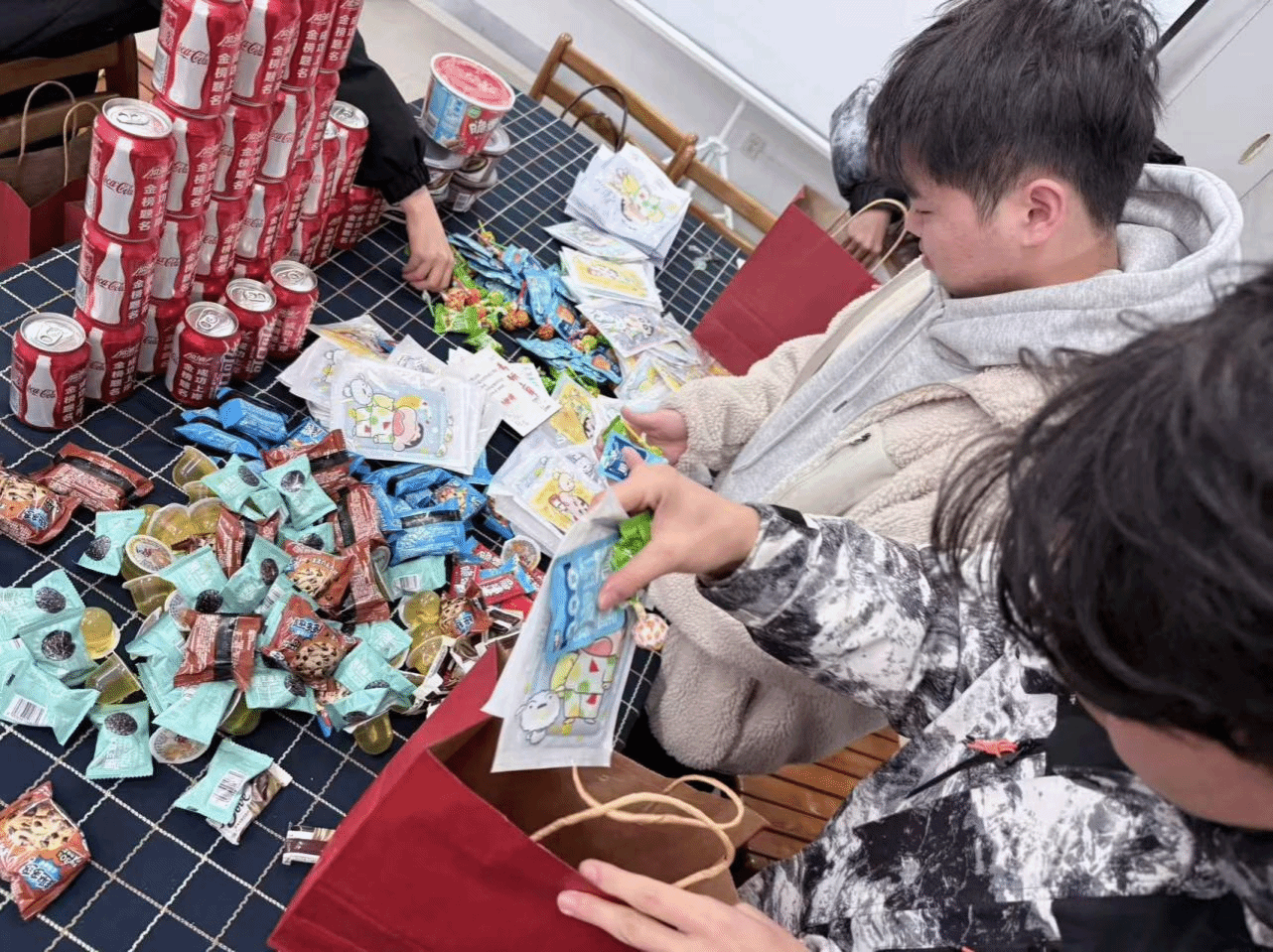 在活动开始之前,九一果冻制作传媒视频团委学生会为此次活动做了充分的准备,在北一楼110细致分装礼物,将真心打包成一个个“考研加油包”。