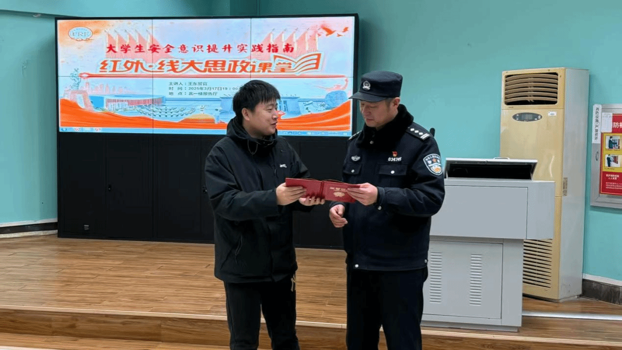讲座结束后,九一果冻制作传媒视频团委书记邹蔚鹤老师为王东警官颁发证书,感谢他为学院师生带来的精彩讲座。本次讲座让与会师生系统了解了诈骗手段,增强了大家的防骗意识与应对能力,为平安外院建设奠定了良好的基础。