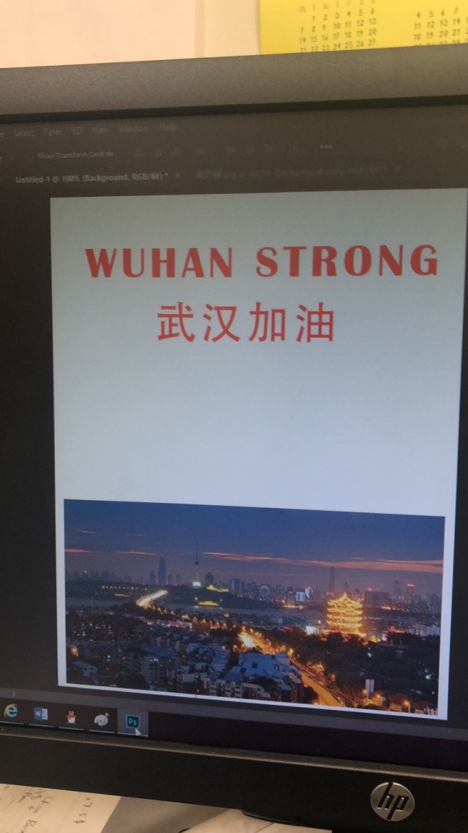 为了能够购买更多的医用物资,我们商量后决定再向阿尔弗莱德大学以及周边社区发起捐款的活动。于是我开始搜集各种资料,制作了一个“武汉加油”的视频以及一张签名海报,在一个晚会活动上,我们给来参加活动的教职工、学生和社区居民播放了视频,并向观众们介绍了武汉人们众志成城、抗击疫情的情况,讲述了地大(武汉)教职工积极努力,支持帮助近500名国际学生的生动事迹。