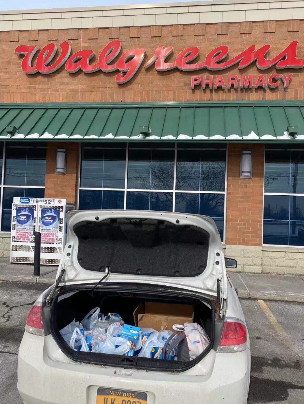 (图一 1月底的一周,我们每天开车前往周边地区的药店购买口罩等医用物资,由于附近药店物资较少,我们最远从居住的纽约上州开到了宾夕法尼亚州。)