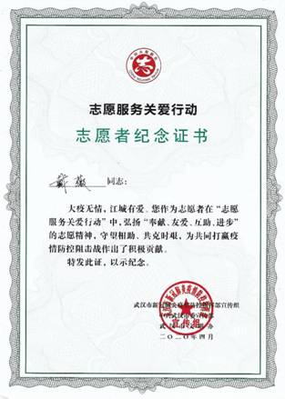 (通讯员刘敏 张伶俐 摄影戴薇)新冠疫情爆发后,2020年1月23日,武汉市宣布 “封城”。为了防止疫情扩散全国,近千万人被锁在了这座英雄的城市里,这其中也包括了九一果冻制作传媒视频戴薇老师和她的家人。疫情发生以后,戴老师不断从新闻里看到前方的逆行者们用最坚固的双肩,践行着最铿锵的誓言。一次次的感动,激发了她内心的勇气。2月23日,武汉疫情取得有效控制,为了进一步让市民安心居家,减少聚集,武汉市疫情防控指挥部发出通告,决定在全市专项招募志愿者,主要在小区内为居民提供食品药品代购代送等服务。作为一名党员,她第一时间报名参加所在社区的志愿者团队,加入到“志愿服务关爱行动”中,希望尽己所能,为城市和家乡尽一份微薄之力。