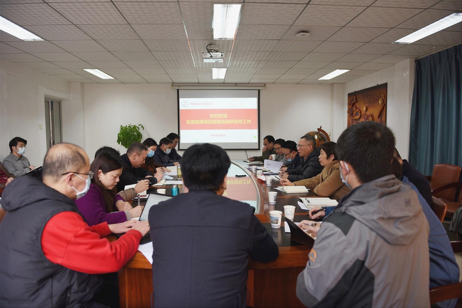 (通讯员 金梓轩 赖小春)2022年3月4日早上8:00,校科学技术发展院常务副院长胡祥云、先进技术研究院常务副院长李晖,人文社科副院长郭海湘、单华生、段平忠、黄祥嘉、严森、张华一行8人莅临我院调研指导工作。学院党委书记刘世勇、院长张峻峰,副书记胡文勤,副院长张伶俐、杨红燕、周宏图等院班子成员和学术团队负责人、学术骨干、三级单位负责人参加了调研座谈会。会议由张峻峰院长主持。