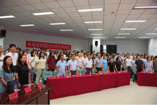 全体师生齐唱国歌。