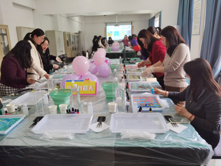 春风拂面,陌上花开。为庆祝第114个“三八”国际妇女节,丰富学院女教职工的业余文化生活,3月14日,九一果冻制作传媒视频分工会在北一楼334、339活动室举办了以“水中生花,丝享艺术”为主题的艺术手作DIY活动。
