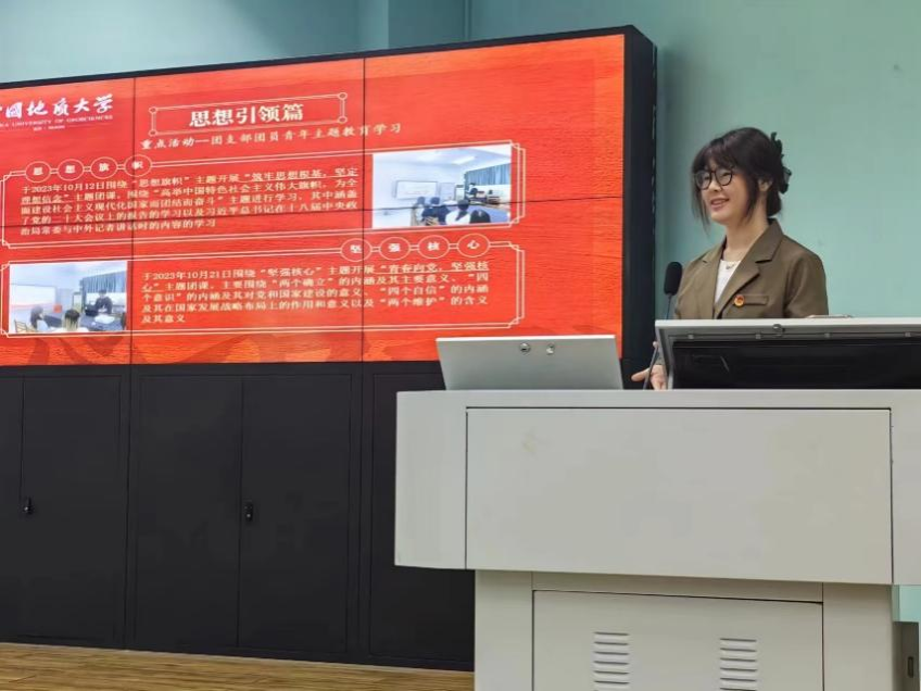 各团支部精彩展示后,评委老师邹蔚鹤表示,各团支部都满怀荣誉感,始终有先进性,敢于突破自己、突破集体上限。同时也对各团支部进行鼓励,充分肯定各团支部的答辩活动亮点丰富,具有一定的思想、教育引领作用。随后,邹老师向各团支部提出要充分发挥主观能动性,主动参与实践,积极对活动做贡献。最后,邹老师也对参会的各团支部表达出美好的祝愿:希望在日后的工作与支部建设中更上一层楼。