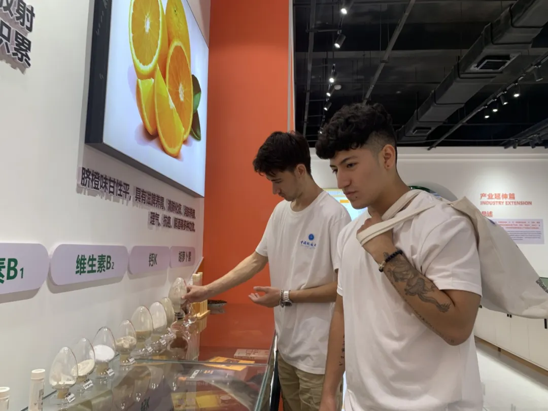 在参观了现代化的生产设备和忙碌而有序的生产线,看到了柑橘如何从枝头走向舌尖后,实践团来到屈姑科普体验馆,品尝到了不一样的产品脐橙酒、脐橙茶等;感受到了一辈又一辈人为了发扬秭归脐橙而付出的卓越奋斗。