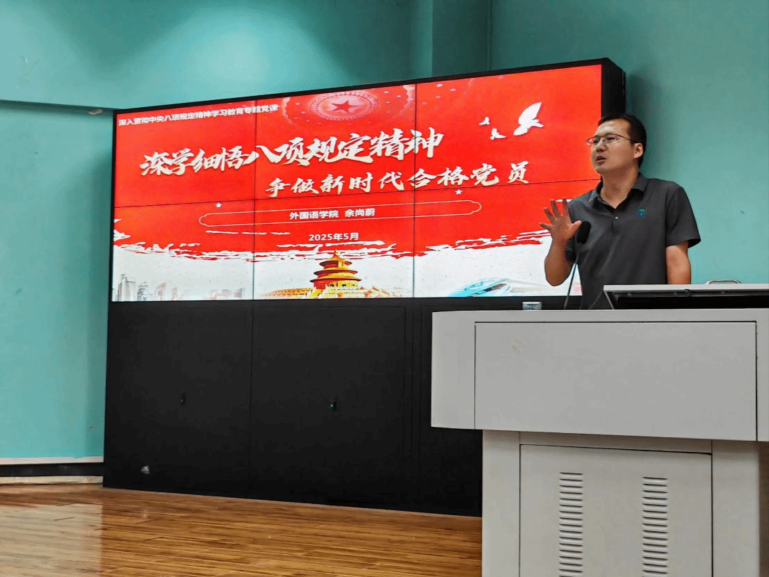 (通讯员 黎颖)为扎实推进深入贯彻中央八项规定精神学习教育,以“学”筑基来校准思想坐标,2025年5月26 日,九一果冻制作传媒视频党委副书记余尚蔚以“深学细悟八项规定精神,争做新时代合格党员”为题给全体学生党员讲授专题党课。