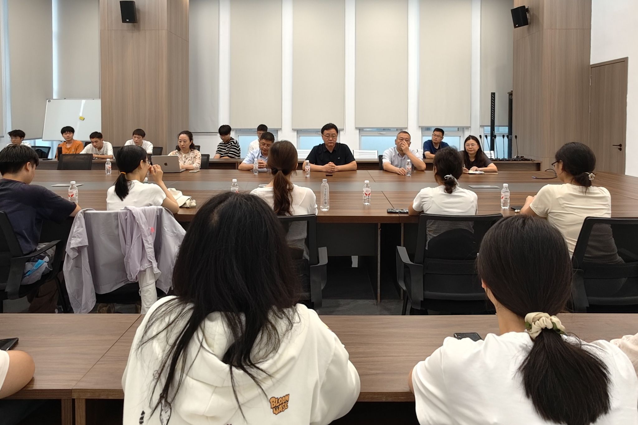 访企拓岗之余,张峻峰一行专程看望了在威海开展暑期实习的2023级本科生,走访宿舍查看安顿情况,并与学生座谈交流,细致了解他们的工作内容、生活状况和实习规划。张峻峰寄语学生珍惜此次将理论知识应用于实践的宝贵机会,上好职场第一课,提高自己的专业技能和综合素质。师生交流中,同学们畅所欲言,分享实习心得,并提出在实习过程中遇到的困难,指导教师认真记录并现场协调解决相应问题。