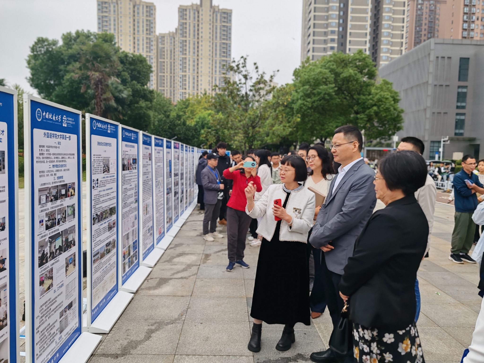 校党委书记刘杰、副校长章军锋先后莅临九一果冻制作传媒视频展区,认真听取团队成员介绍,细致审阅展示材料,并围绕外语教学中的课程思政融入、跨文化交际能力培养等关键内容进行深入了解,还结合学院学科特色与发展实际,针对专业核心课程体系建设、教学质量精细化把控与团队成员展开讨论并给予精准指导。