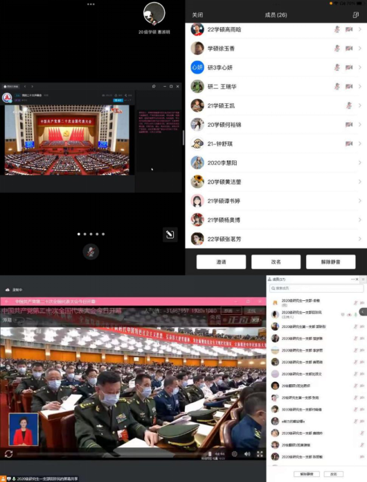 同时,学院各学生党支部也在线上组织收听收看党的二十大开幕会。