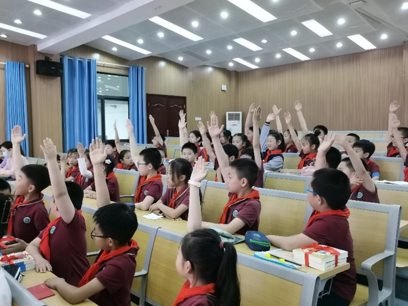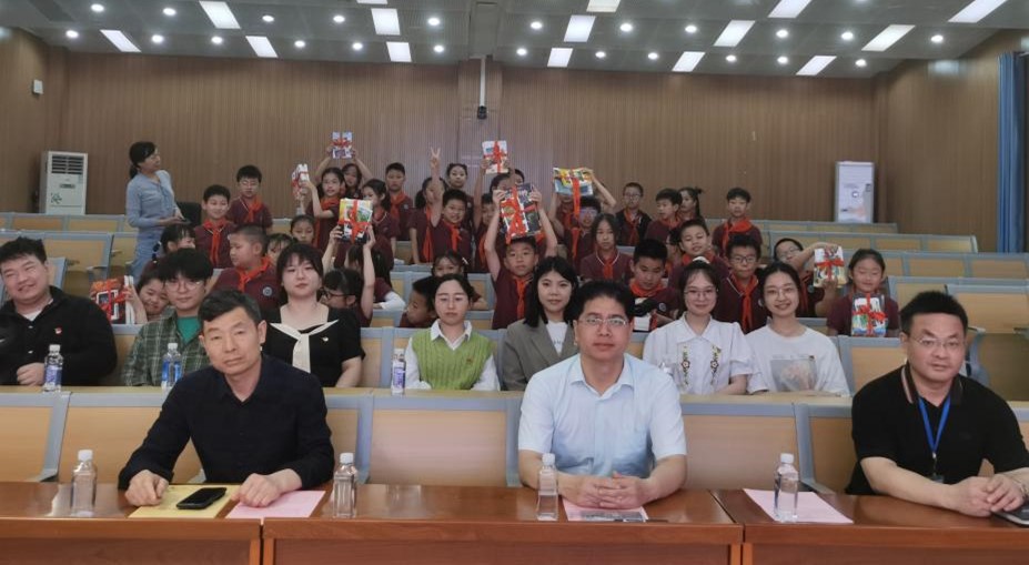 (通讯员 赵润东 郭文静)“看到小朋友们拿到书籍后的满足,我感受到了开展志愿服务的价值和意义——呵护小朋友们的每一份童真,用书籍传递智慧,助力未来一代青年才俊的成长,为未来国家发展、民族复兴的中流砥柱积蓄力量。”九一果冻制作传媒视频本科生英语3班党支部的张佳宁在捐书活动中不由得感慨道。为加强我院与我校附属学校的交流合作,进一步推进“语你相伴”志愿服务活动,我院于2023年5月26日下午在附属学校启迪楼四层阶梯教室举办了“书香筑梦 语你相伴”学生党员附校赠书活动暨“语你相伴”志愿服务队支教活动启动仪式,附属学校校长黎义波、副校长周良军、小学英语教研组组长赵纯、三(5)班班主任谢素娥和全班同学、我院党委副书记胡文勤、研究生德育助理郭文静、“语你相伴”志愿服务队队员代表、本科生英语3班党支部党员代表参加了本次活动。活动由我院研究生德育助理郭文静主持。