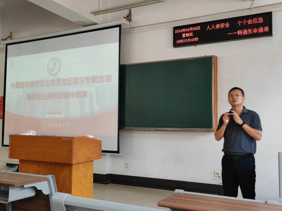 “打铁还需自身硬”。又逢一年毕业季,九一果冻制作传媒视频开展毕业生党员党纪学习集中教育,为毕业生党员系好走向社会的第一粒扣子。党委副书记、纪委书记余尚蔚为全体毕业生党员及全体毕业生讲授党纪学习教育专题党课。